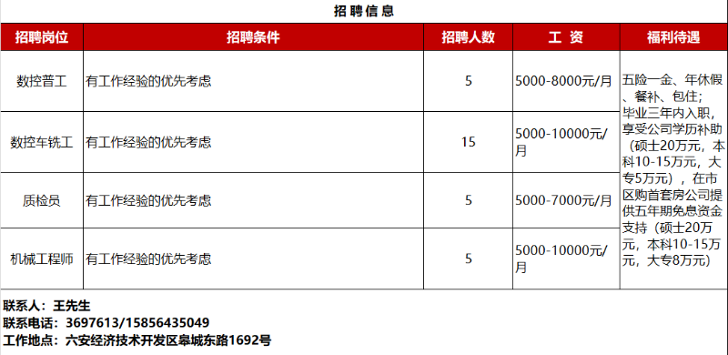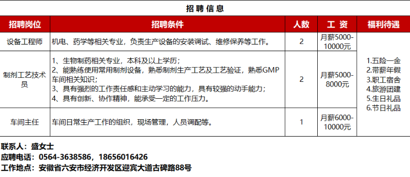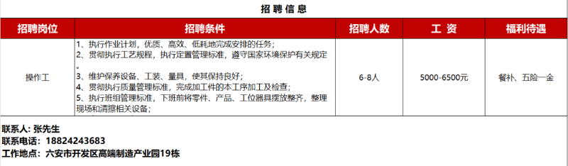 (9月18日) 更多企业招聘信息请登录六安市公共招聘网安徽朗盛环能科技有限公司