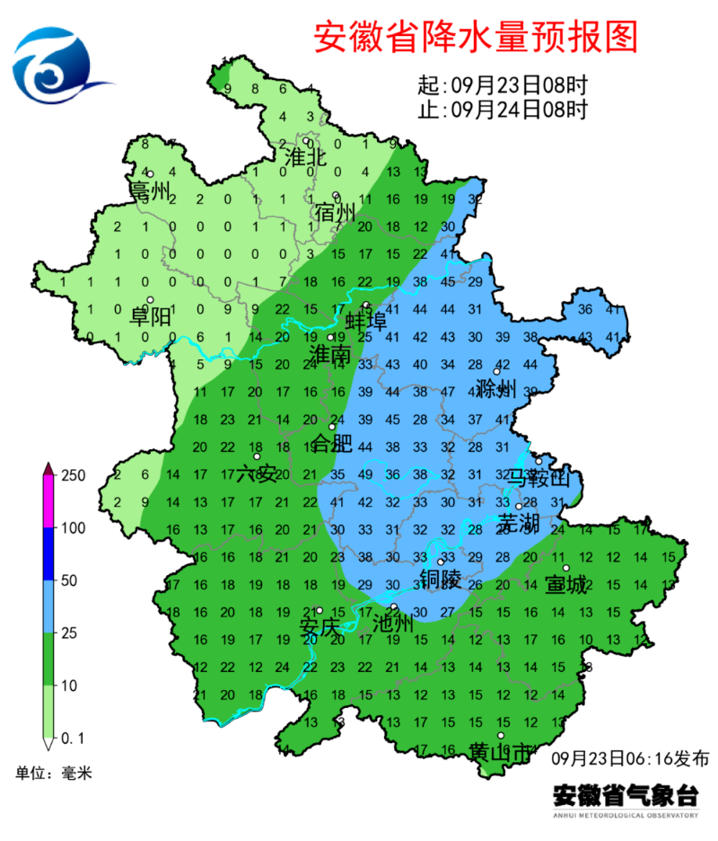 安徽省气象台预计,受台风“桦加沙”外围和冷空气共同影响,23日至25日沿淮淮河以南有较明显降水过程。