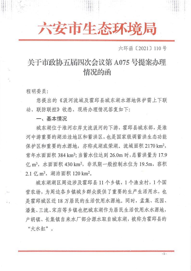 【市政协委员提案办理】六安市裕安区k8凯发关于市政协五届四次会议第A075号委员提案的答复函