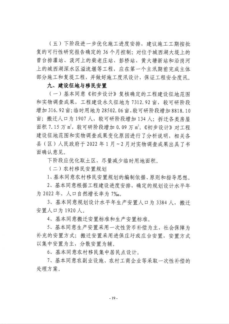 关于安徽省淮河流域重要行蓄洪区建设工程初步设计报告的批复