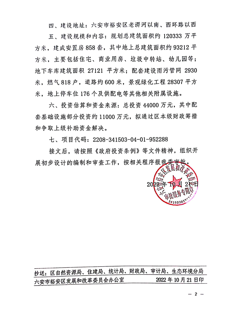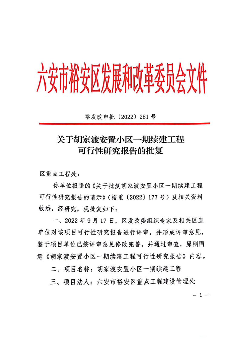 胡家渡安置小区一期续建工程可行性研究报告的批复