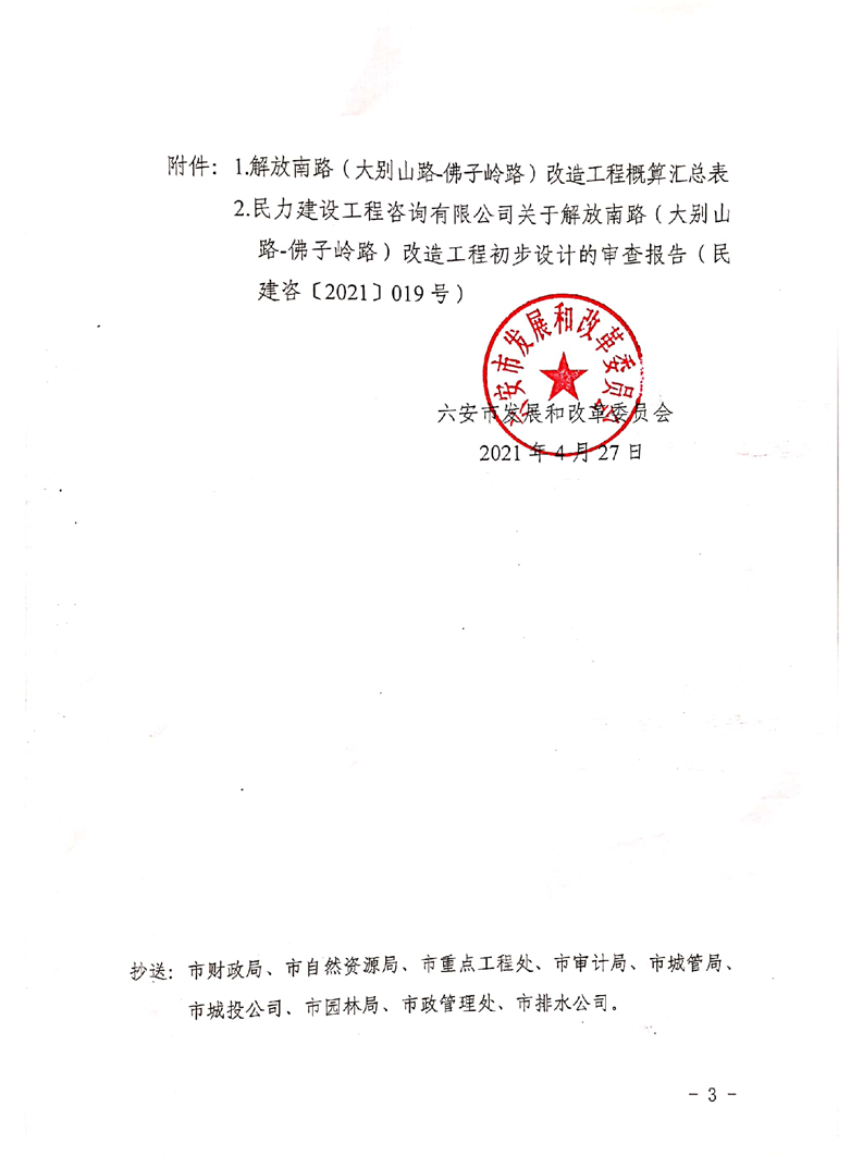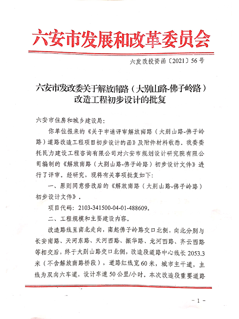 解放南路(大别山路-佛子岭路)改造工程初步设计批复