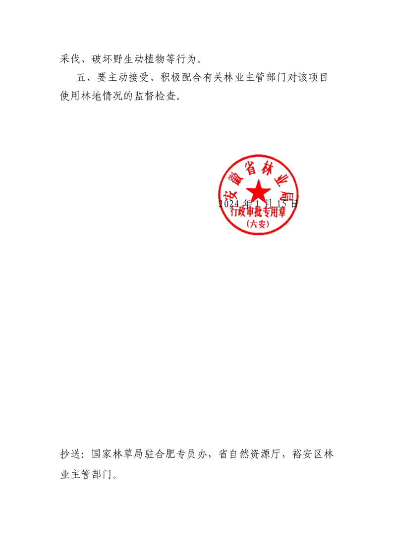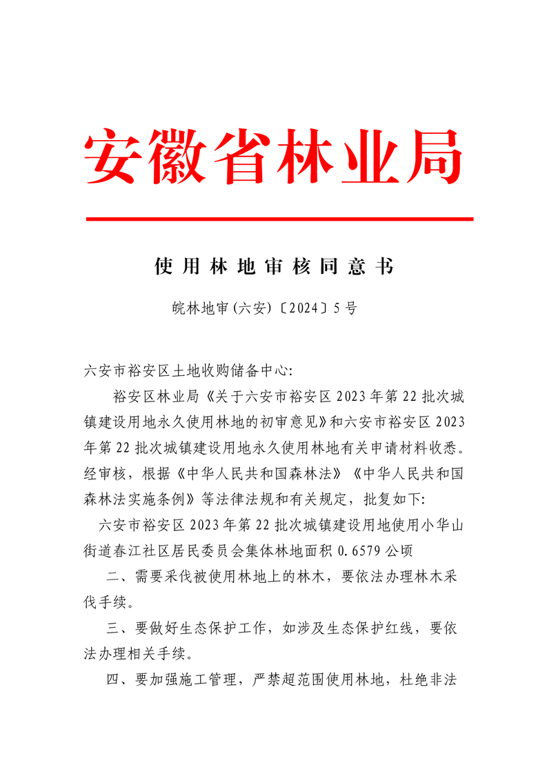 六安市裕安区2023年第22批次城镇建设用地使用林地审核同意书
