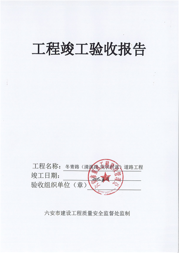 冬青路(清溪路-现状村道)道路工程竣工验收报告书