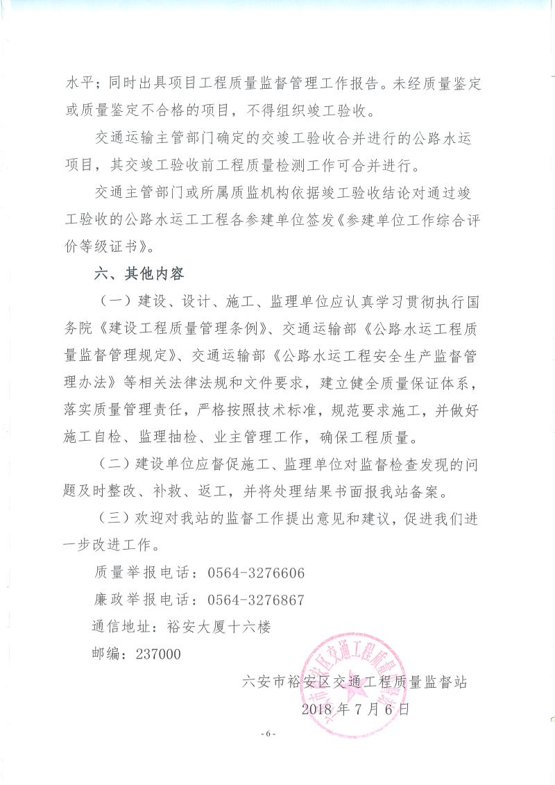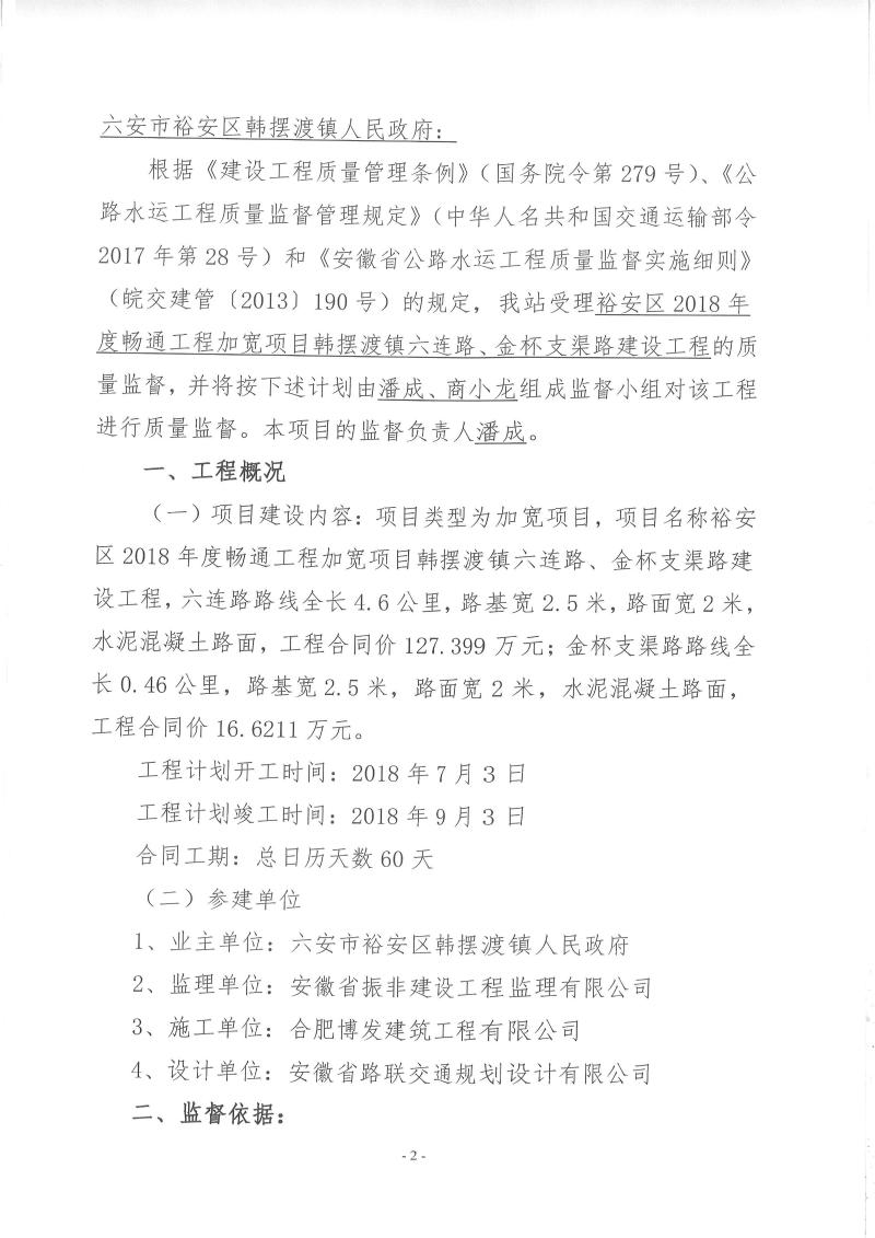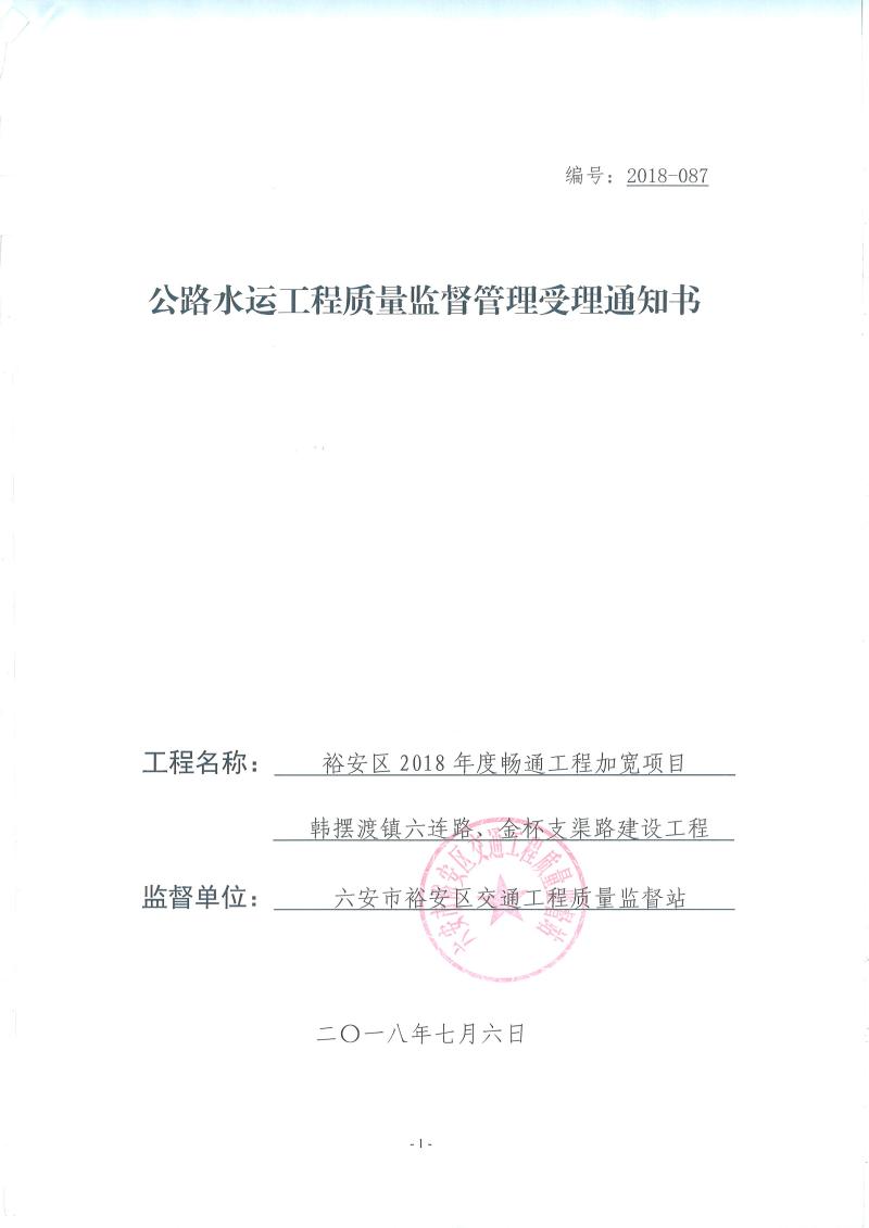 裕安区农村道路畅通工程质量监督管理受理通知书