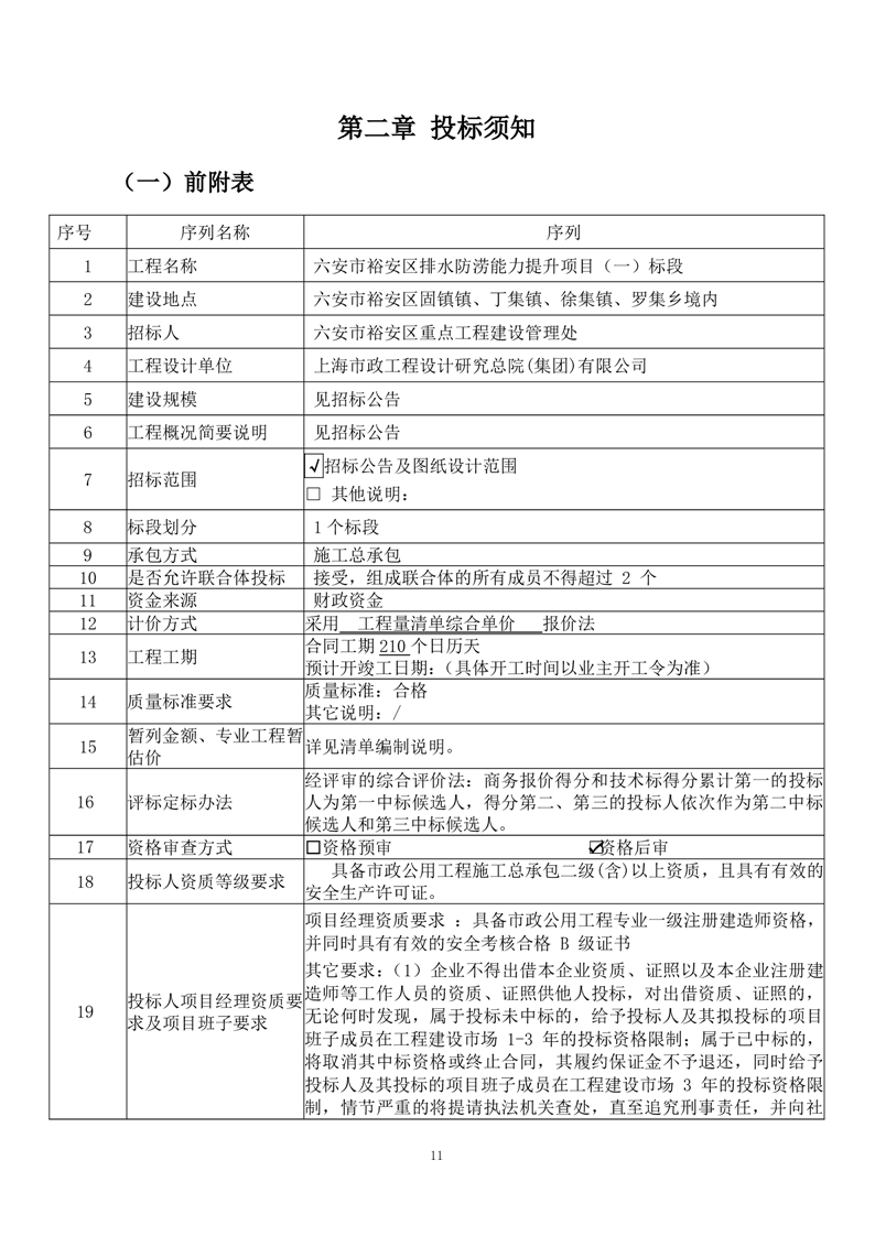 裕安区排水防涝能力提升项目(一标段)招标文件