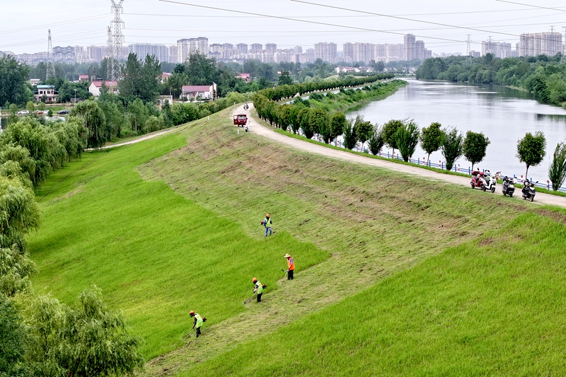 近期,工人在淠河总干渠裕安区苏埠镇大巷段对干渠大堤的杂草、杂树等进行清理,消除隐患。