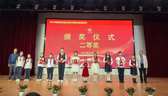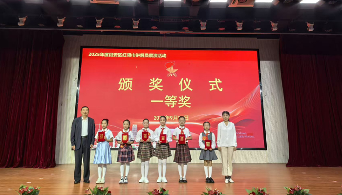 9月21日下午,由裕安区委宣传部、裕安区委讲师组、裕安区文明办、裕安区关工委、裕安区新红会、裕安区教体局、团裕安区委、裕安区科协、裕安区少工委9家单位联合主办的“强国复兴有我 争当新时代好少年”2025年度裕安区红领巾讲解员展演活动在齐云路小学报告厅顺利举办。经过前期初赛的激烈选拔,来自全区乡镇和城区的24位红领巾讲解员齐聚现场同台竞技,用童声讲述初心故事,以真情传承红色基因。