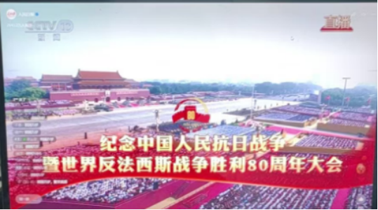 9月3日上午,六安市裕安区老年大学校园内庄重而宁静,数百名银发学员通过直播课堂共同观看中国人民抗日战争暨世界反法西斯战争胜利80周年纪念大会实况直播。