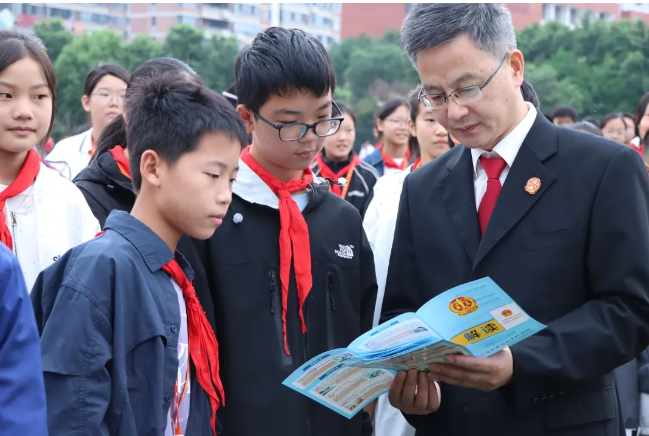 手册护航,把“安全知识”装进口袋。活动现场,裕安区人民法院三级高级法官兼六安九中法治副校长程平、刑事审判庭庭长杨俊带领团队,为学子们发放安全知识手册。学生们热情高涨,极大地激发了同学们对“防欺凌、反邪教”安全知识的兴趣。