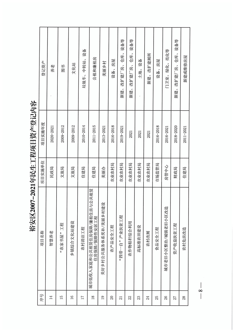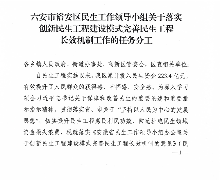【保基本民生】六安市裕安区民生工作领导小组关于落实创新民生工程建设模式完善民生工程长效机制工作的任务分工