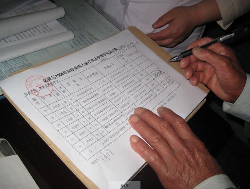 2014年继续对艾滋病、结核病、晚期血吸虫病等重大传染病病人及时进行医疗救治,并对其医疗救治费用按规定标准给予减免。 图为巢湖市结核病救治补助对象签领补助金场景。