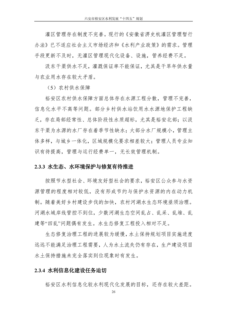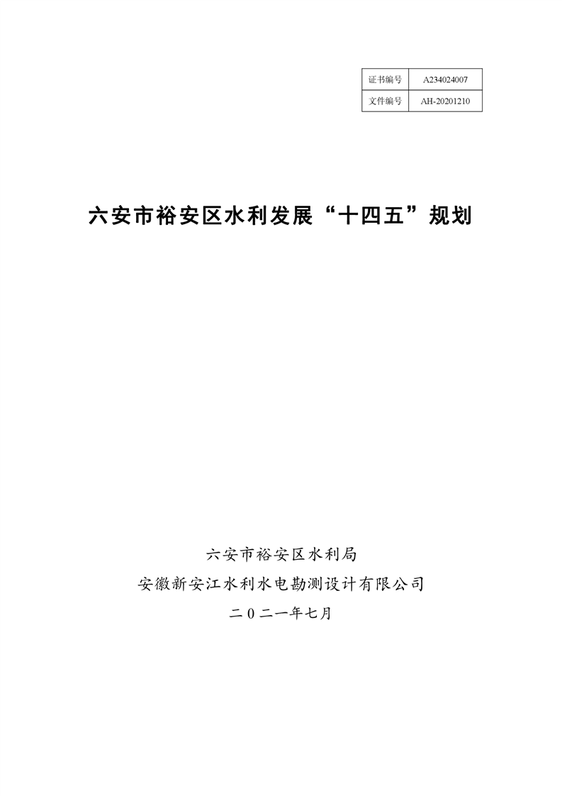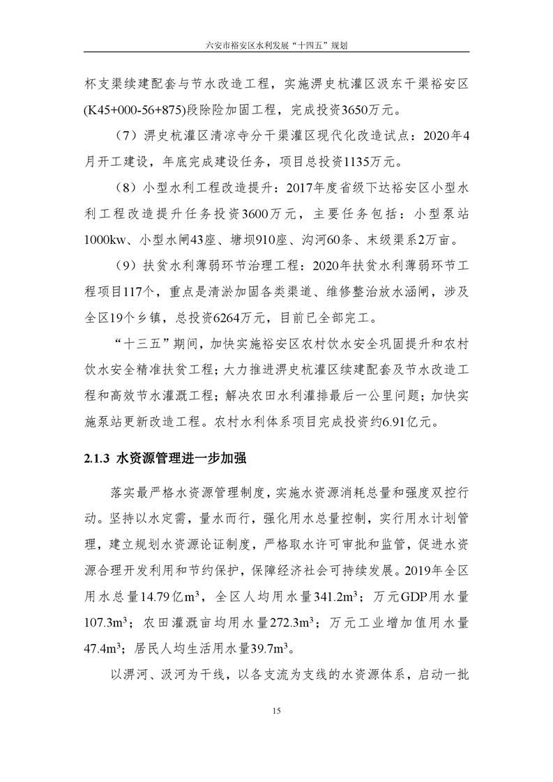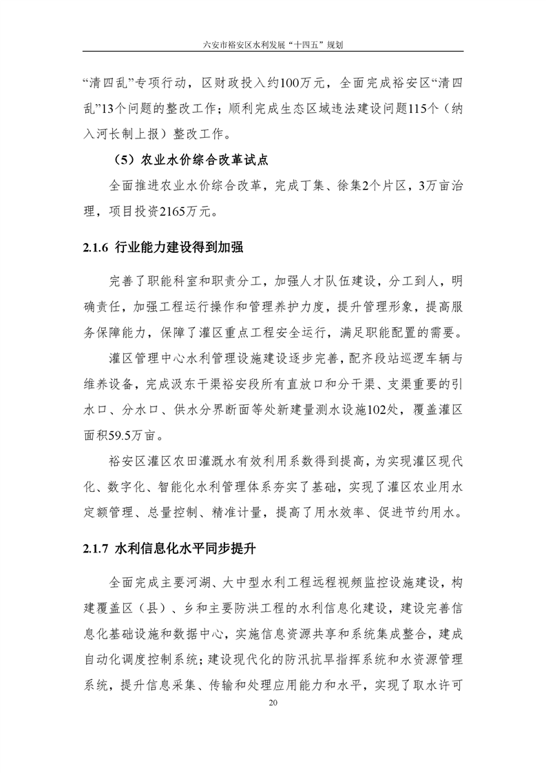 六安市裕安区水利发展“十四五”规划