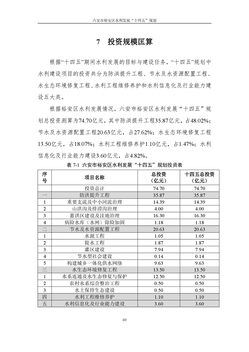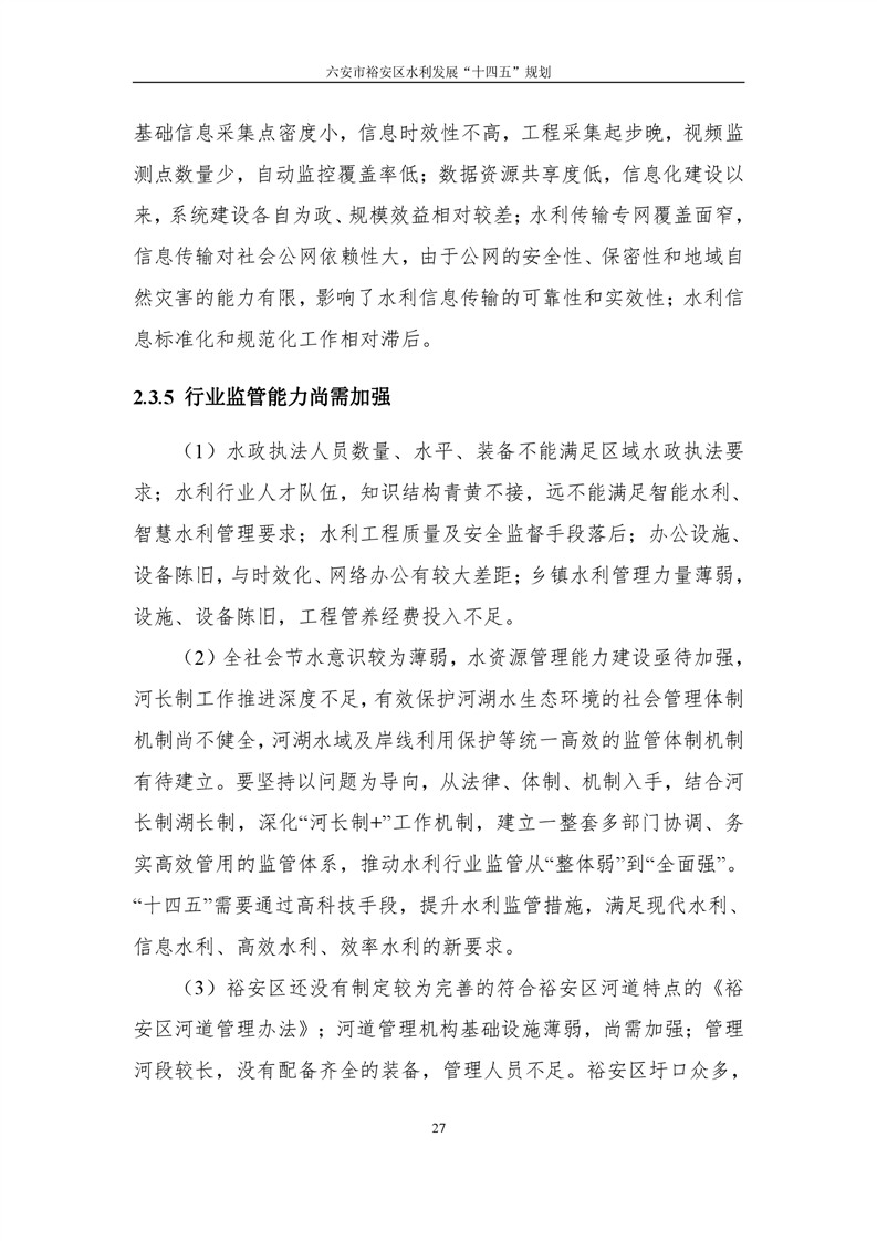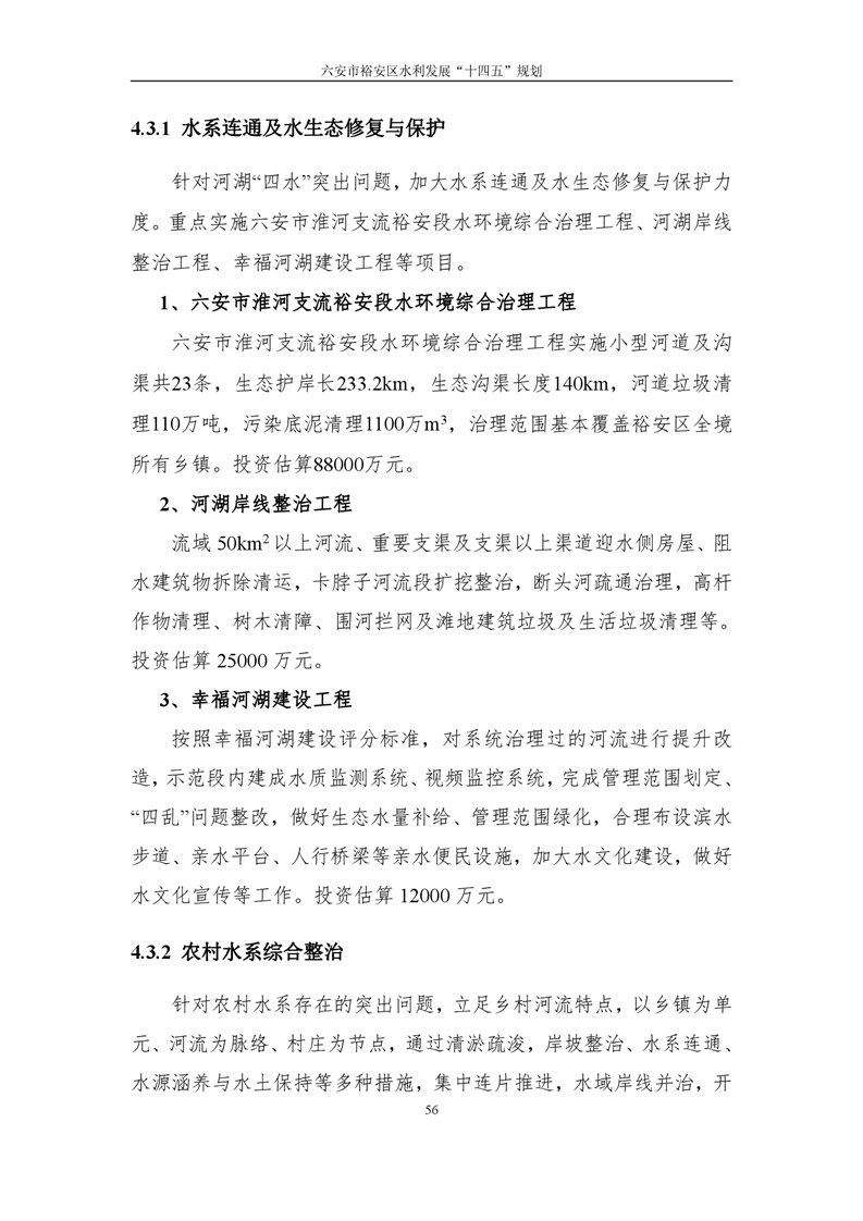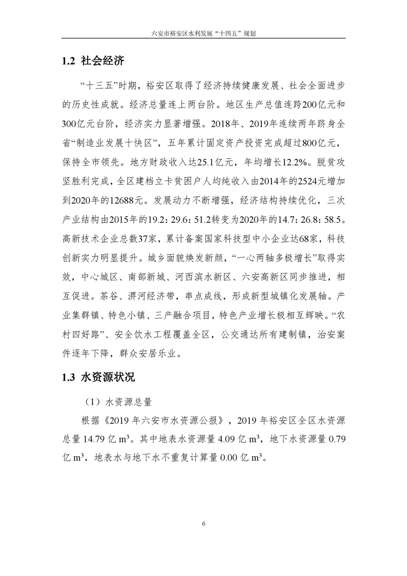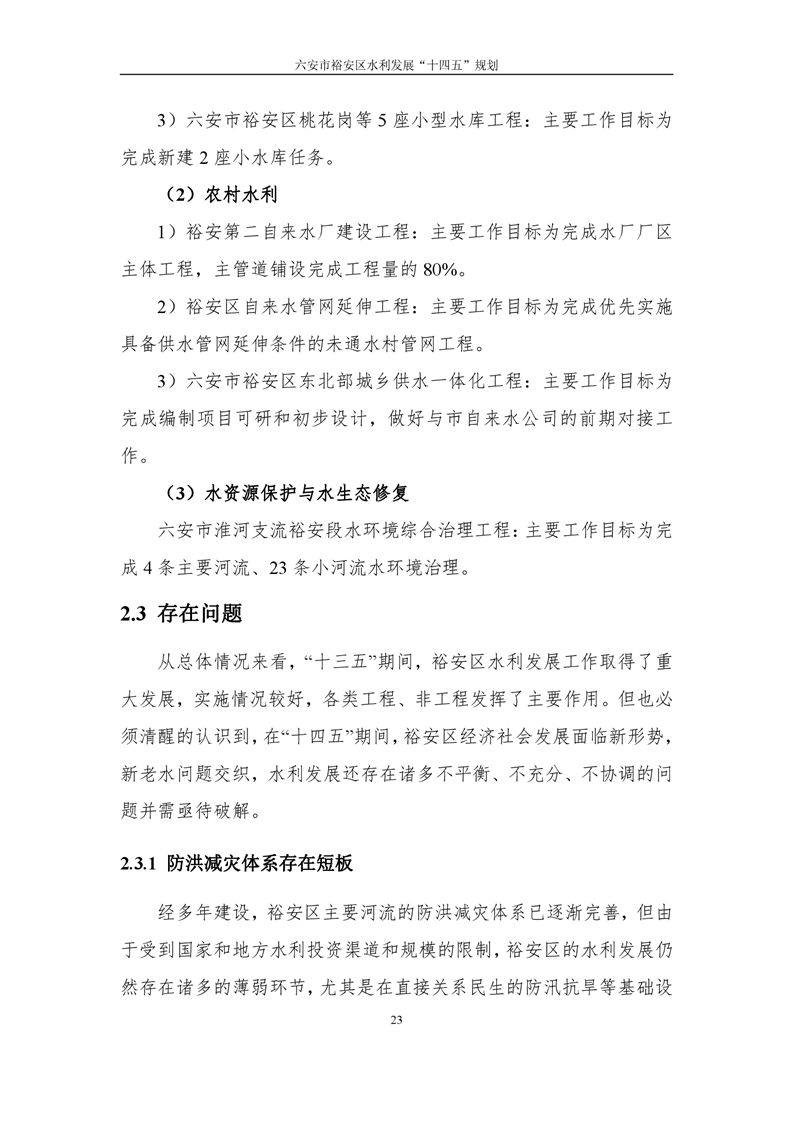 六安市裕安区水利发展“十四五”规划